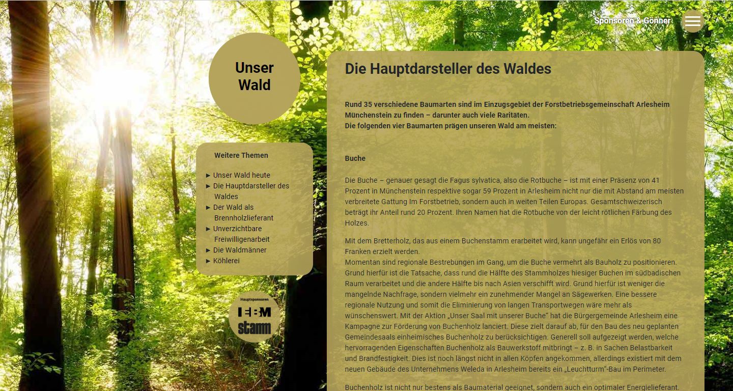 Die Buche – genauer gesagt die Fagus sylvatica, also die Rotbuche – ist mit einer Präsenz von 41 Prozent in Münchenstein respektive sogar 59 Prozent in Arlesheim nicht nur die mit Abstand am meisten verbreitete Gattung Im Forstbetrieb, sondern auch in weiten Teilen Europas. Gesamtschweizerisch beträgt ihr Anteil rund 20 Prozent. Ihren Namen hat die Rotbuche von der leicht rötlichen Färbung des Holzes.